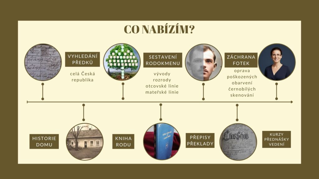 Předky vyhledám, rodokmeny sestavím, fotky naskenuji, opravím, pamětníky navštívím a nahraji, staré písmo přeložím.